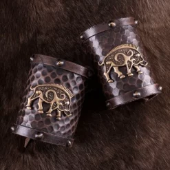 Deepeeka Leather Warrior Bracelets Celtic Boar Knocknagael, Pair