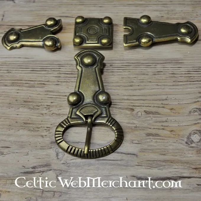 This belt fitting is a replica of a set excavated in tomb 2 in Balingen. Belts like this were worn by all Germanic tribes between the 5th and 6th century. Similar originals were found in a large diversity.