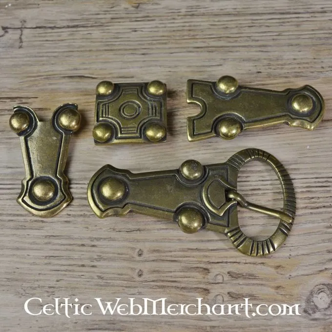 This set consists of one belt buckle, one piece that was attached to the place where the belt buckle was fastened, one belt end and one piece of fitting.