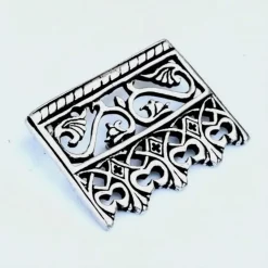 This belt buckle is made after a depiction on the artwork “Portrait of a lady” by the 15th century Flemish artist Rogier van der Weyden. Buckles were worn in Burgundy, Flanders and France during the 15th century. They were worn by both men and women. It measures 5,4 x 3,8 cm and is suitable for belts with a width of 5,5 cm. This buckle is delivered excluding a buckle.