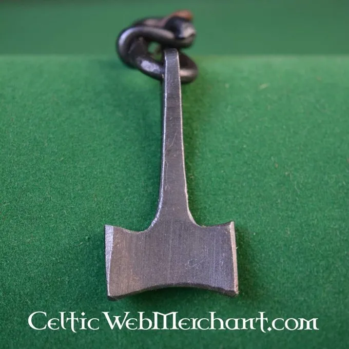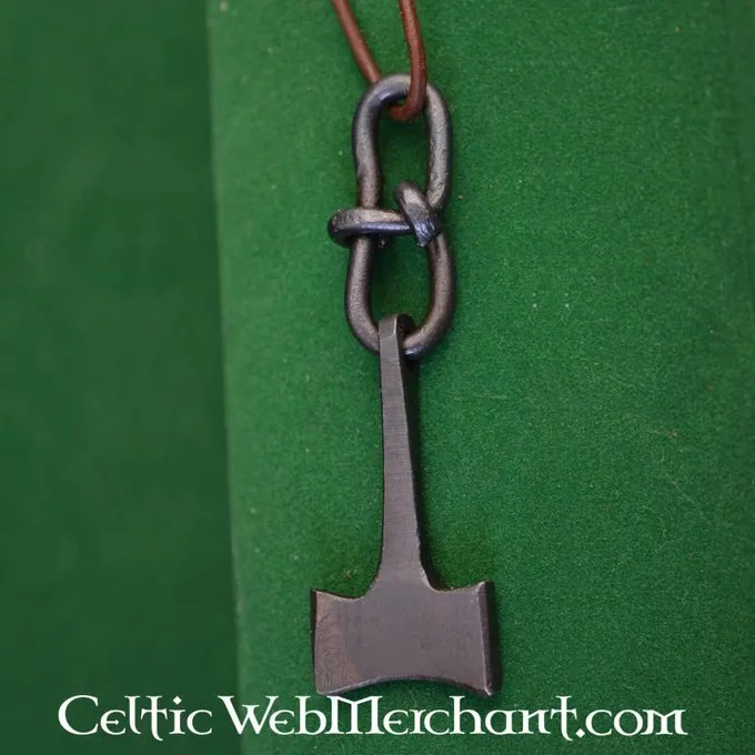 The hammer is the symbol for Thor, the god of thunder. He was seen as the highest god of the Vikings by mainly peasants and warriors. According to the mythology Thors hammer was forged by the dwarf Brokk and when it was thrown it never missed its target. This Thors hammer is hand-forged of three parts.