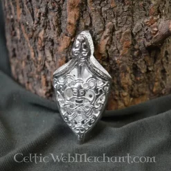 This scabbard chape is based on originals from the 10th-11th century AD. The chape is made in the Ringerike style. It can easily be fastened on the scabbard. The chape is made of silvered brass.