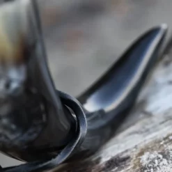 Over the centuries, the drinking horn has been used by different peoples as a cup during ceremonies and celebrations. The use of the drinking horn is even mentioned in the Edda. This horn is perfect for Viking reenactment, home decor, LARP and makes a wonderful gift. It is also ideal for festivals. This drinking horn is hand made from buffalo horn and is polished. There is a layer of varnish on the inside so that you can drink from the horn. It comes with a metal stand with which you can place it on the table. The horn is engraved with a Vegvisir. The Vegvisir is a symbol from the Icelandic Huld manuscript, a 19th century occult book of spells. Vegvisir means: that which shows the way. Whoever wore this magical symbol would not get lost during a storm. It is not known whether the early medieval Vikings knew this symbol. But in modern Viking culture and among neopagans it plays an important role and has been given a new context.