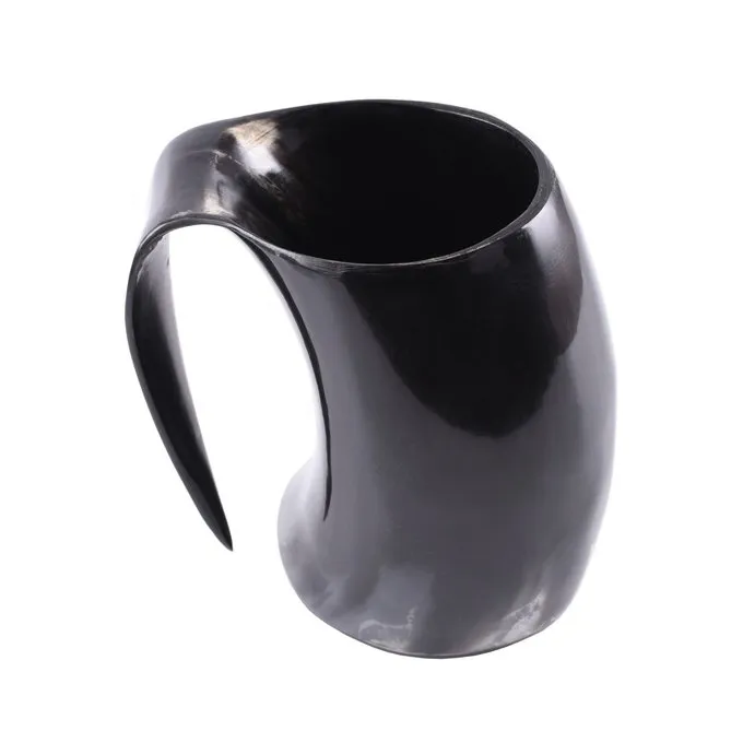 A beautiful handmade horn mug with ear, made of polished horn. Also known from Game of Thrones, Vikings and The Last Kingdom. Very nice to give as a present, to use at home or for a party or festival. This cup is suitable for drinking cold drinks and has a coating on the inside. Before first use and after each use, clean the cup with lukewarm water and a cloth. Do not use detergent.