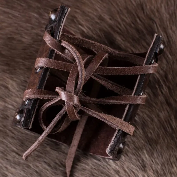 A beautiful leather bracelet in Celtic style, for daily use or with your LARP or reenactment outfit. The triskelion is a symbol that has been used since the Neolithic, one of the oldest symbols of humanity. It is also a well-known symbol in Celtic culture and in Neopaganism. It may symbolize death, life and rebirth, but there are different interpretations of the triskelion. A great gift for yourself or for someone else. The bracelet is made of high quality leather, with an inner lining of soft suede leather for extra comfort. It has leather cords for fastening.