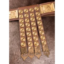 This belt fitting is great for making your own Roman belt, it is specially designed for mounting a pugio or Roman dagger on your belt. The fitting is based on an original find from the castrum of Vindonissa, Switzerland, from the 1st century AD. The original was part of a Roman legionary’s belt: the cingulum or balteus. It is delivered in pairs, and comes without pre-drilled holes for fastening to a belt.