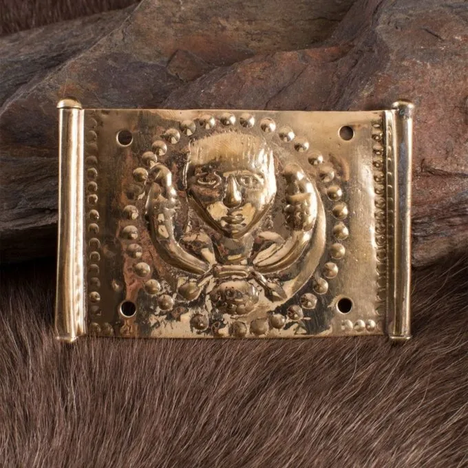 This belt fitting is great for when you want to make your own Roman belt. Such parts were worn on a Roman legionary’s belt: the cingulum or balteus. This belt fitting is decorated with an image of a human head. The belt fitting has pre-drilled holes to fasten it to the belt. A unique and fantastic accessory for Roman reenactment.