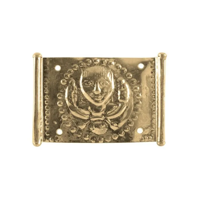 Material: brass / / Size: approx. 8 x 5.8 cm / / Best suited for approx. 6 cm wide leather belts / / Delivered without parts for fastening to belt / / Delivered without parts for fastening to belt / / Based on a historical original