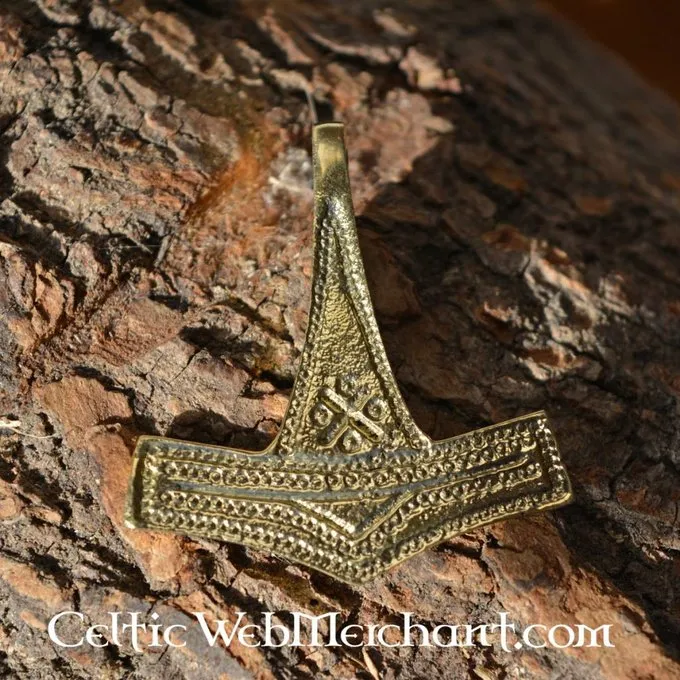 This Thor`s hammer is a replica of an original found in Rømersdal. The hammer is the symbol of Thor, the god of thunder. He was seen as the highest god of the Vikings by mainly farmers and warriors. According to the Norse mythology Thor`s hammer was forged by the dwarf Brokk and when it was thrown it never missed its target.