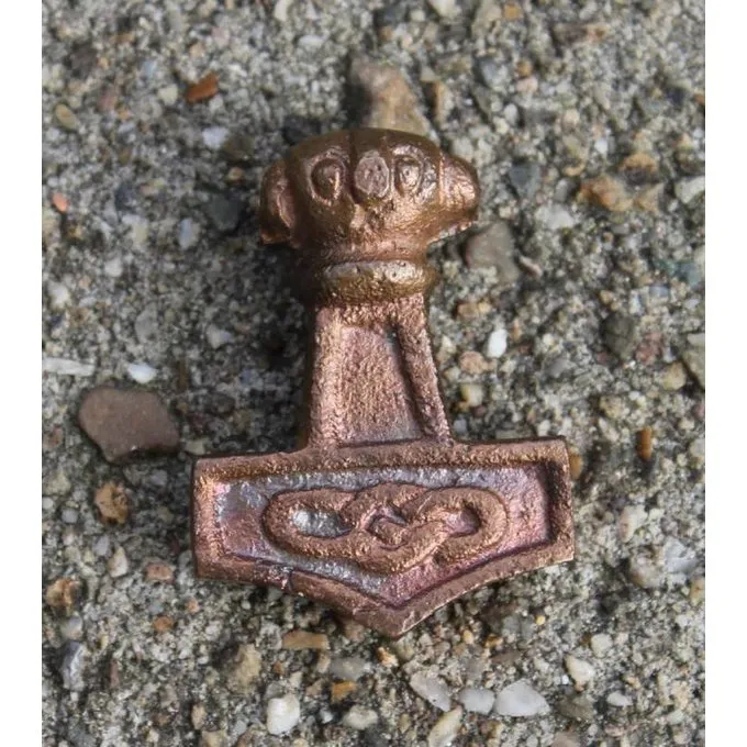 The hammer is the symbol for Thor, the god of thunder. He was seen as the highest god of the Vikings by mainly peasants and warriors. According to the mythology Thors hammer was forged by the dwarf Brokk and when it was thrown it never missed its target.