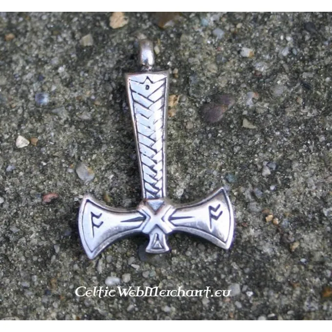 This double axe pendant is made of Sterling silver and measures 30 x 20 mm. It weighs approx. 6,1 g.