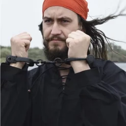 This doublet is made of wool mix and can be worn over a shirt and pants. It has laces with brass lace ends to close the doublet at the front. The sleeves are also fastened with laces and these can also be detached during darm days.
