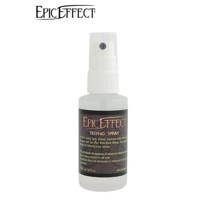 This Epic Effect setting spray, 50 ml, is meant for spraying over your make-up. It provides a protective layer and makes sure that your make-up stays fixed. The spray makes the make-up waterproof and resistant to transpiration. After use, the spray can be removed with mild soap and lukewarm water. Please note: hold the spray 30 cm from your make-up. Do not spray into the eyes!