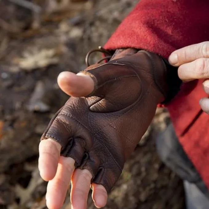 These practical fingerless gloves are made from high quality vegetable tanned leather. Do you need protection or heating of the hands, but at the same time a maximum flexibility and moveability of the fingers? Then these gloves are perfect. The gloves have hand-stitched edges, which makes damages and tearing less likely. You can use the leather laces to wear the gloves more tight or loose.