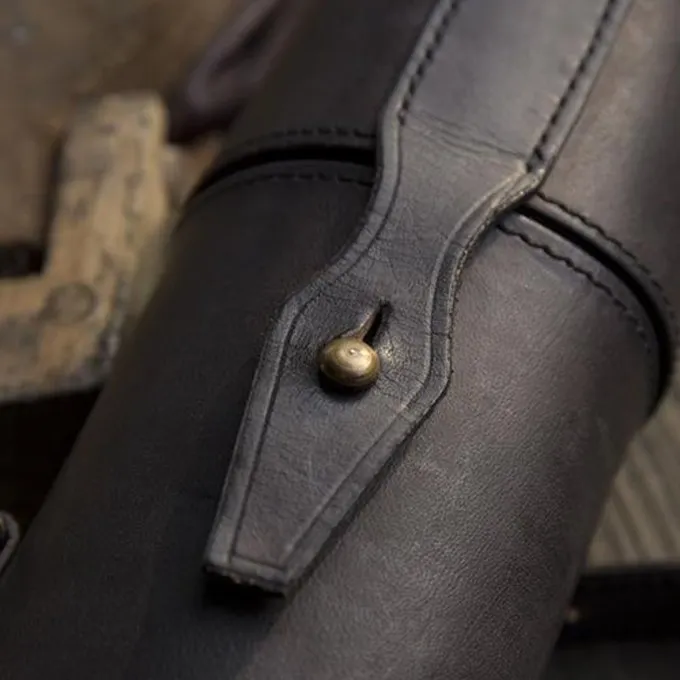This is the perfect attribute for festivals and LARP events. You can hang this stylish leather holder on your shoulder with the leather belt. You can use it for carrying a bottle, food, or paper scrolls and maps. In that case you can also leave it open so that people can see your mysterious paperwork.