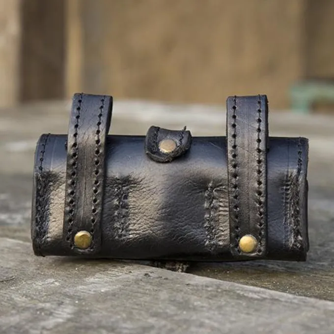 This is the perfect accessory for wizards, witches, healers, alchemists, explorers and assassin LARP and Cosplay. This set consists of a leather bag with three compartments that can hold three glass bottles. Three clear glass bottles with cork are included, all three with a capacity of 5 ml. You can fill these bottles with colored powder or liquid that you can pack and use during LARP.