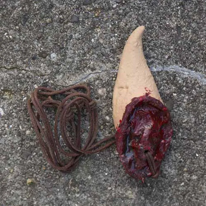 Material: 100% latex, katoen / / Length: 4 cm / / Width: 2 cm / / Height: 10 cm / / Color: skin color with blood spots /