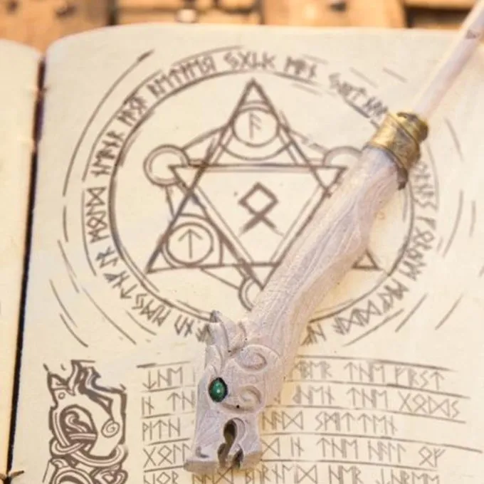 This wand is designed lifelike so that the grip seems to be made of wood with a dragon head with a gem eye and a gold band around the grip. A beautiful wand inspired by Old Norse mythology! The magic wand is made of wood and has a polyurethane foam grip. You can separate the grip from the wand and put it on other Epic Armoury wands, for a better customization and replacement of broken tips. This wand required little maintenance and is perfect for LARP or Cosplay of Harry Potter, Fantastic Beasts and other magical worlds.