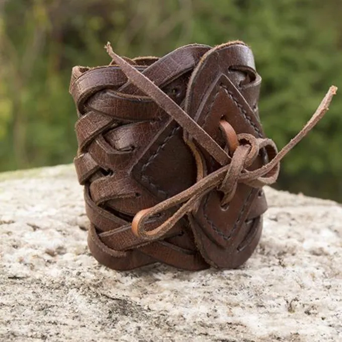 This braided leather bracelet is a beautiful piece of jewelry to combine with your re-enactment, LARP or Cosplay outfit. But you can also wear it as a unique accessory in modern life. It is made of high quality leather and is around 9,5 cm in length. You can close the bracelet by tying it on the back with the leather laces.
