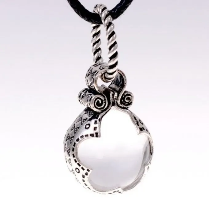 This piece of jewelry is a replica of an 11th century original found on Gotland. Mountain crystal was also very popular among the Vikings during the early Middle Ages. Large and small pieces of mountain crystal were used in jewelry. This replica has polished glass instead of mountain crystal.