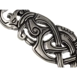 This Viking jewel is based on a 9th-10th century belt tongue. This pendant shows the Midgard snake, a snake that would encircle the world in Viking mythology.