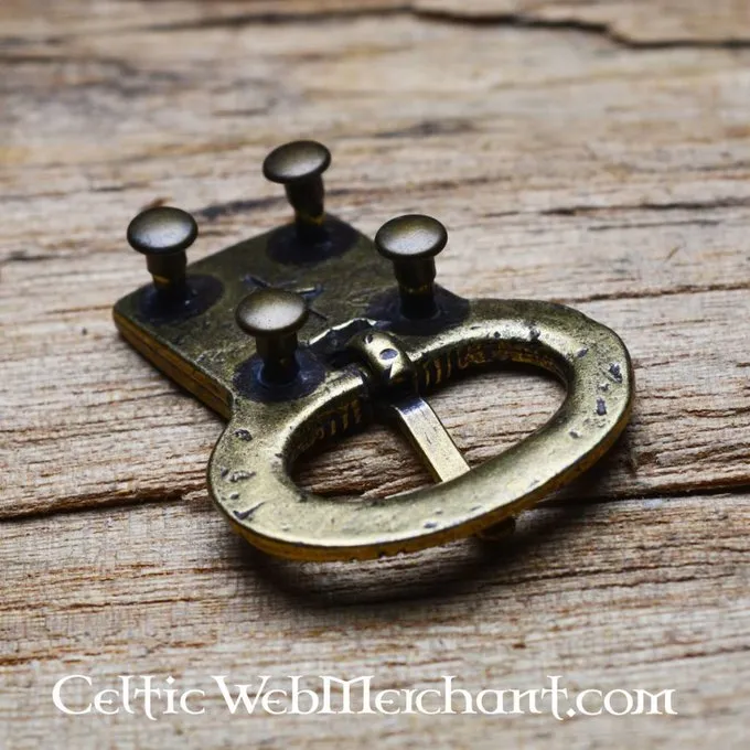 This belt buckle is based on 4th century originals excavated in Germany and France. Belt buckles like this were worn by the Germanic tribes and the Roman auxiliae.