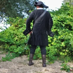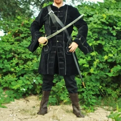 This coat is made of velvet. It can be closed on the front with buttons and is lined with cotton. It is available in black, black-red (black coat, red finish) and red-black (red coat, black finish) in size S up to XXXL.