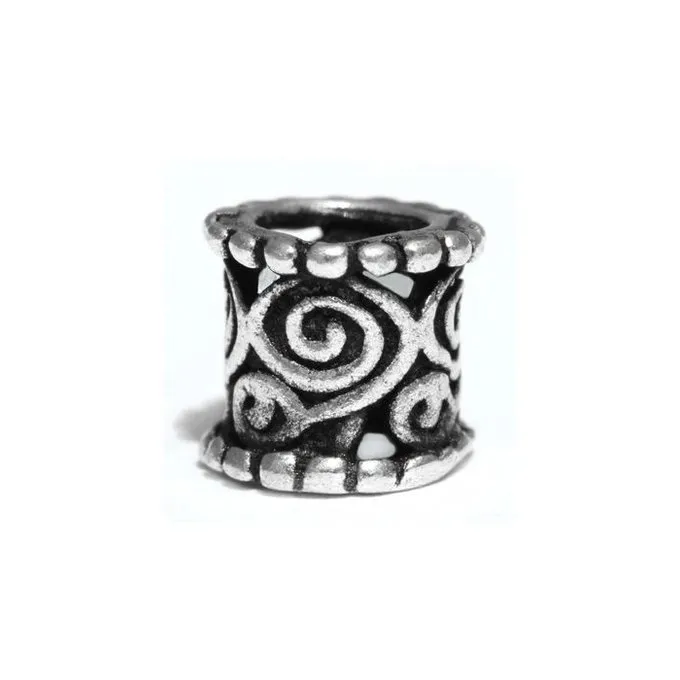 A medieval beard bead made of Sterling silver. This beard bead has an infinite knot motive. The inner diameter of this bead is 0,3 cm, it measures approx. 5 x 6 x 6 mm and weighs 4 grams.