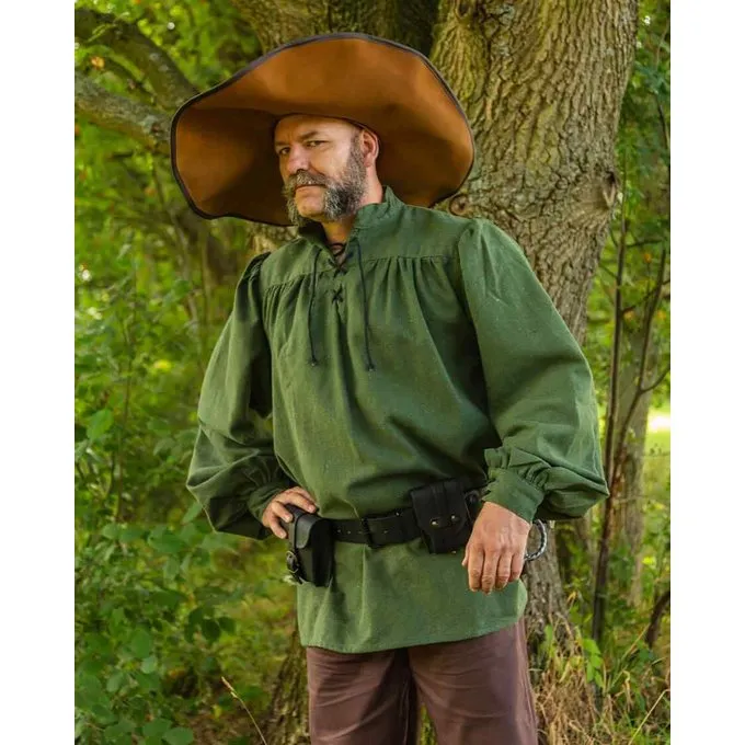 This shirt is suitable for cosplay, LARP and reenactment. The shirt is made of cotton canvas. It has a lace-up closure that can be worn open or closed. The sleeves of the shirt are very wide cut. This gives the shirt extra freedom of movement which makes dancing or fighting easier. The wide cuffs are closed with a lace. The shirt is available in many different colors and forms a good basis for many different costumes.