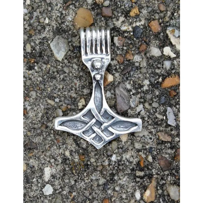 The hammer is the symbol for Thor, the god of thunder. He was seen as the highest god of the Vikings by mainly peasants and warriors. According to the mythology Thors hammer was forged by the dwarf Brokk and when it was thrown it never missed its target.