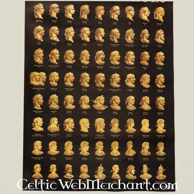 This A3 sized poster shows a timeline of the Roman emperors, from Augustus to Romulus Augustus, including the time they reigned.
