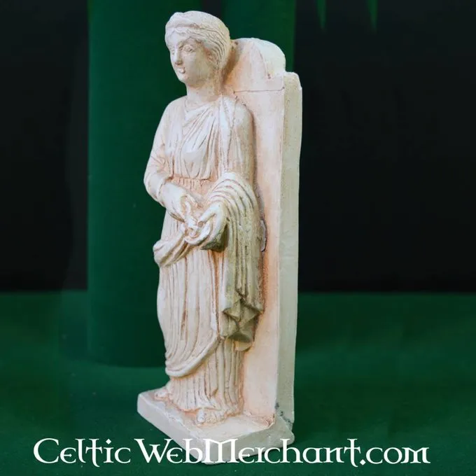This votive statue is a replica of a piece from the 2nd century AD, found in Hocscheid. It nowadays is part of the collection of the Rheinisches Landesmuseum in Trier. Small statues of Sirona were placed in house altars throughout the whole Roman empire.