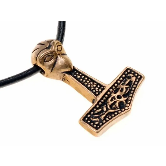 This Thor’s hammer is a replica of a 9th-10th century original found in Mandermark on the island of Mon in Denmark. This Thors hammer has a dragon head at the top.