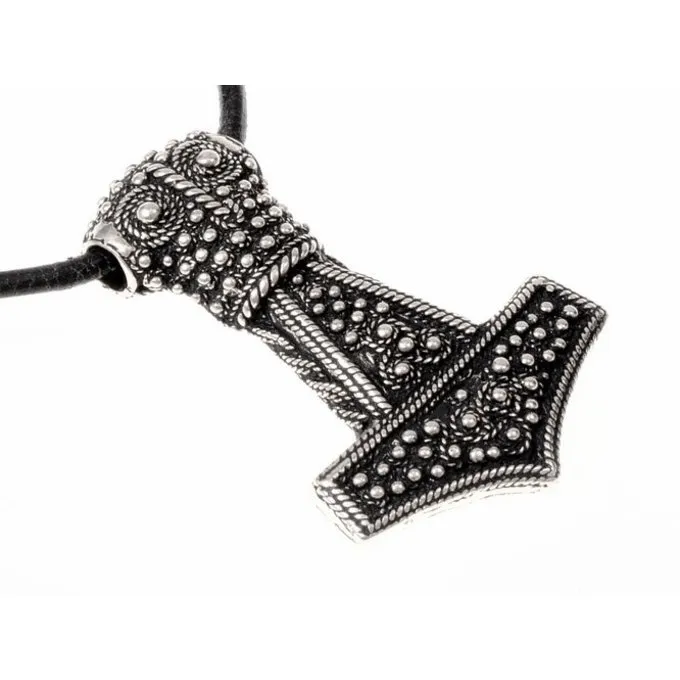 This beautiful Thors hammer is a replica of a 9th-10th century original found on the Swedish island of Oland. Vikings wore a wide variety of Thors hammers. Thors hammers have been excavated all over the Viking world. This Thor’s hammer is semi-granulated. On the original piece, the small granules are soldered piece by piece on the Thors hammer. This replica is cast in one piece, which reduces the price.