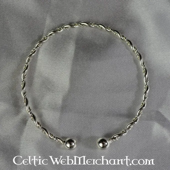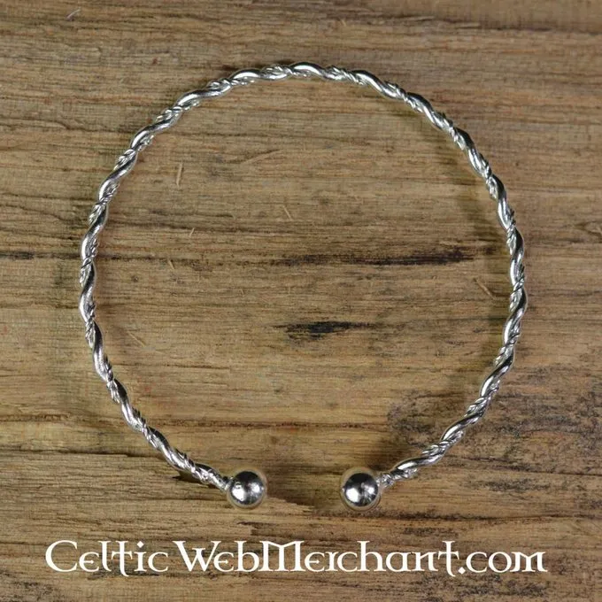 Vikings preferred to carry their valuables on their body. As a result they wore beautiful jewels like this, that they could also use as a currency in times of need. This bracelet is made of silvered pewter.