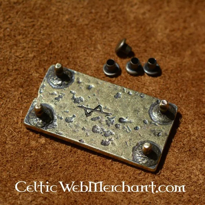 This belt fitting is based on a Germanic original from the 6th century, found in Valsgärde, Sweden. The Valsgärde period can be seen as the predecessor of the ‘Viking Age’. The belt fitting consist of various knot motives that end in dragon heads.