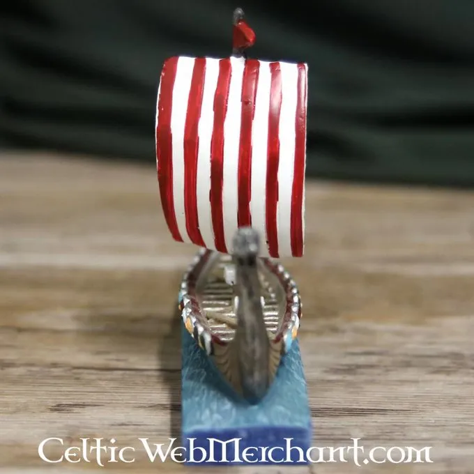 This model is based on a Viking longship or drakkar. The bow is shaped in the form of a dragon head, possibly to scare of the enemy.