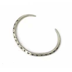 This bracelet is a replica of several originals excavated all over the Viking world. Between the 9th and 11th century these bracelets were frequently used for making payments. A piece with the value of the transaction was chipped off. The silver was weighted and subsequently used for completing the transaction.