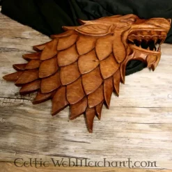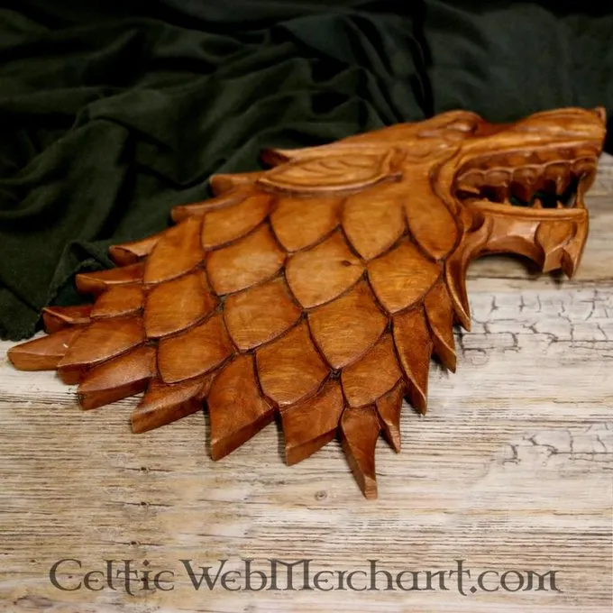 This wooden wall decoration of a wolf is inspired by the wolf Fenrir from Viking mythology. It can also be used as sigil of the house Stark from Game of Thrones. This wood carving is fully hand made. Each piece is unique.